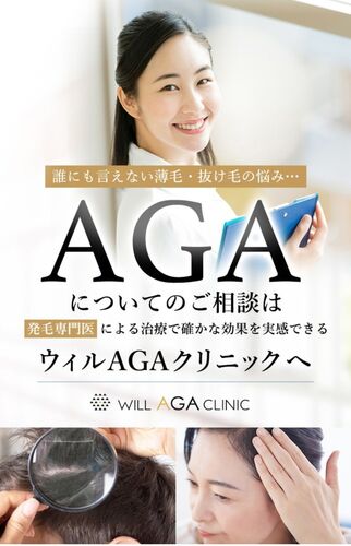 ウィルAGAクリニックでは、薄毛のタイプを分ける「ウィル式BHSヘア診断」というオリジナル診断方式を使って、一人ひとりの症状に合わせた治療内容を提案。 薄毛のタイプを100,000種類以上に細分化し、医学的根拠に基づいたオリジナルの発毛治療を行っていま…